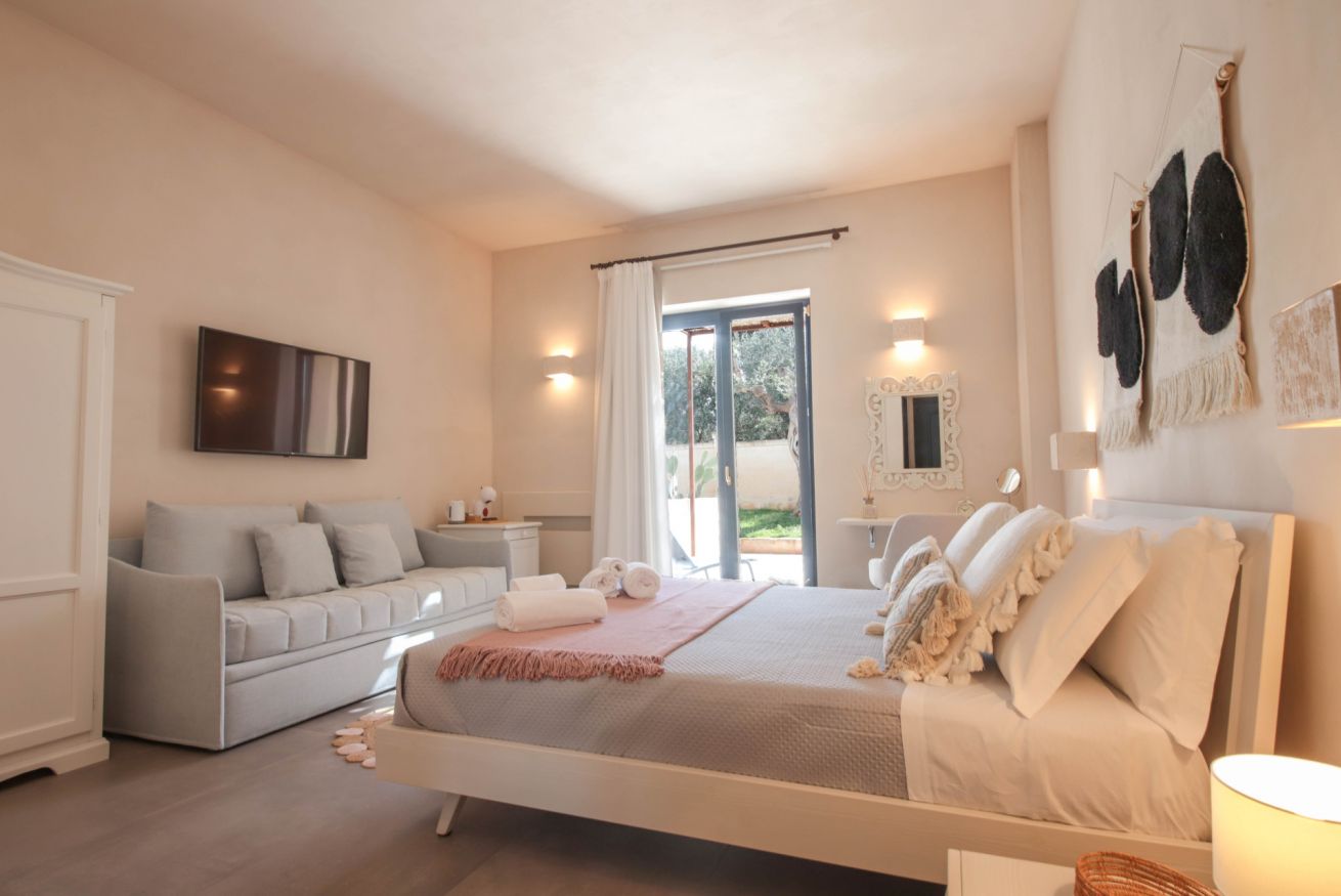 Casale degli Ulivi is a tuff farmhouse distributed over two floors, equipped with two separate entrances that lead to a world of total comfort and relaxation. Each room offers the flexibility of transforming into a welcoming accommodation for 3 or 4 people thanks to the little devils. Each room is equipped with convectors for hot and cold air, TV, minibar, coffee machine and kettle, the private external veranda provided for each room creates a personal outdoor space.